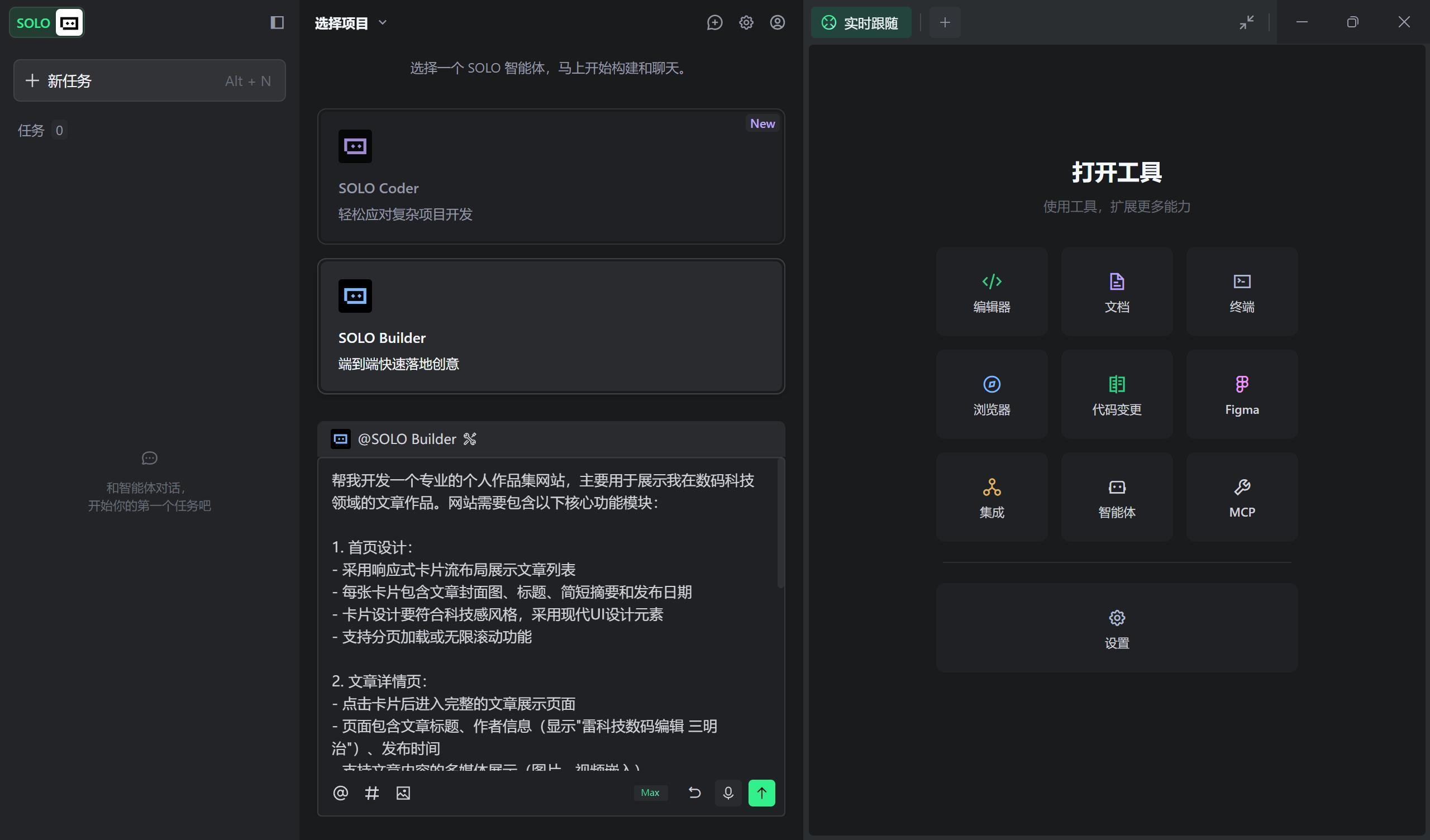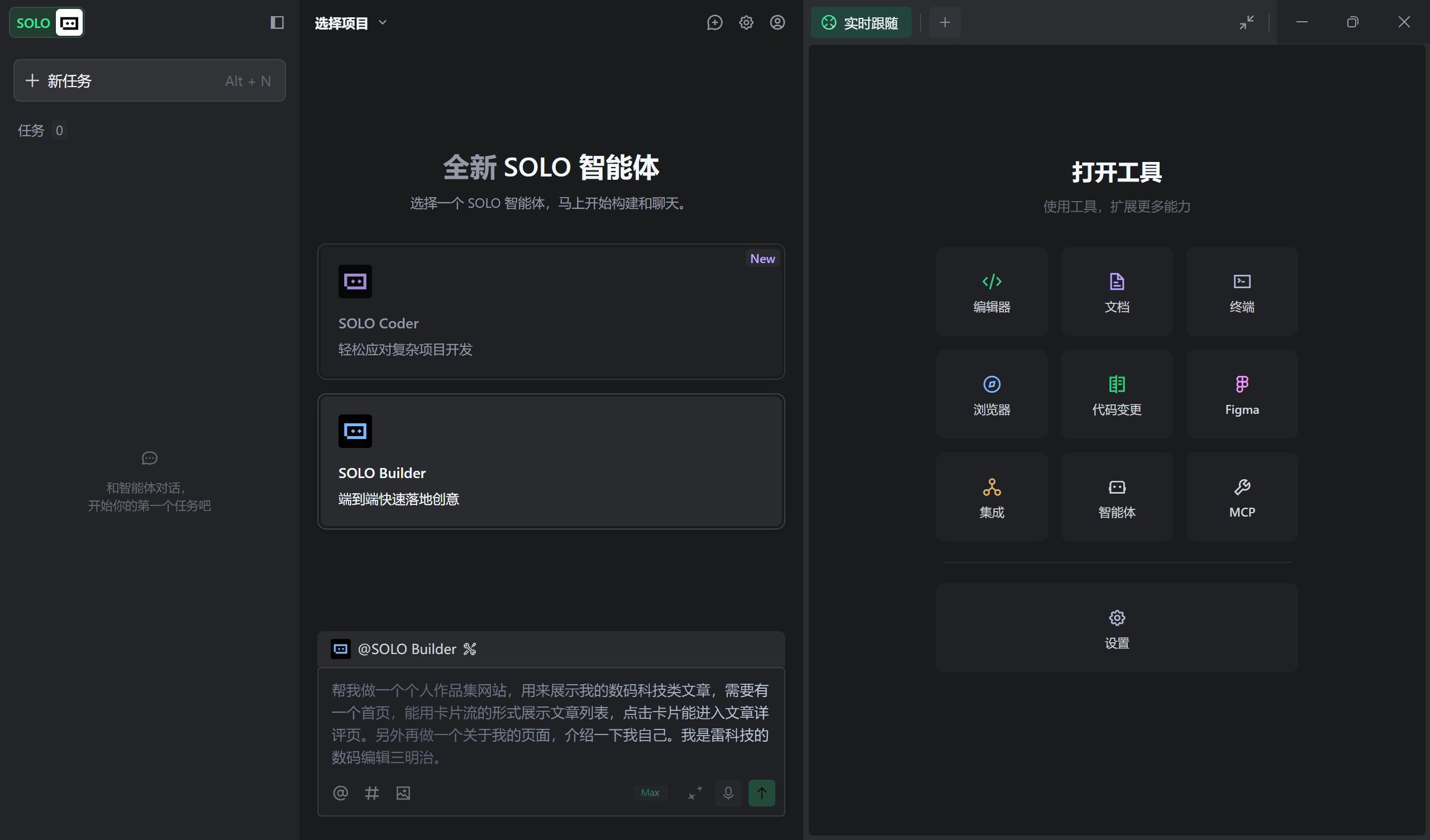 但字节这次全量上线的TRAE SOLO,思路完全不同,它想当的不是“辅助工具”,而是那个懂你心思、能直接把项目从毛坯干到精装的“包工头”。